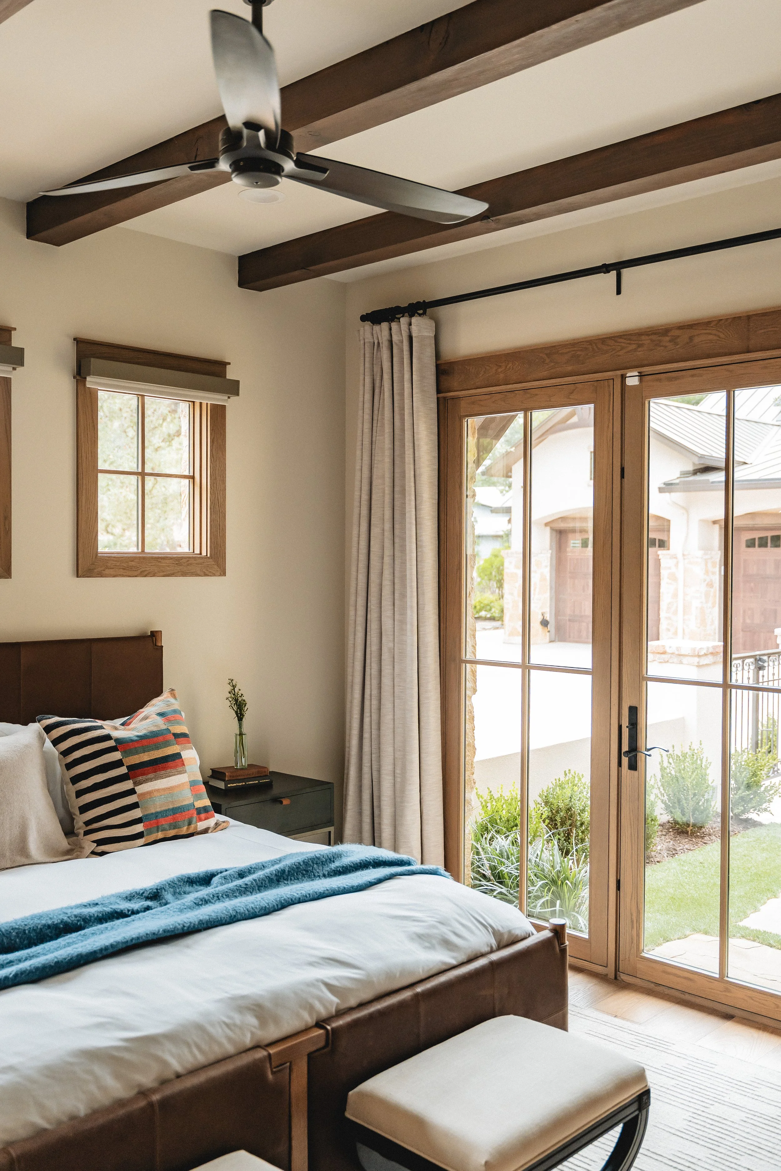 Furniture and finish selections lean rustic in texture and form, adding subtle edge that complements the home’s original cottage inspiration without overpowering it.